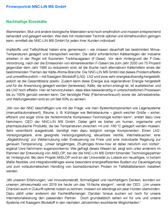 Artikel "Flüssiger Stickstoff sorgt für stabile Pharmaprodukte" in der Fachzeitschrift "PROZESSTECHNIK FÜR DIE CHEMIEINDUSTRIE" CAV 10/2023