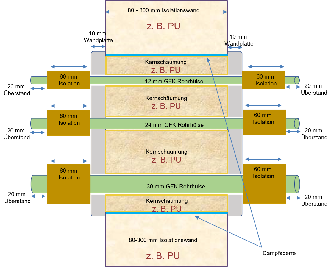 für Rohre, Elektro- und Datenleitungen durch isolierte Wände in Kühlräumen.